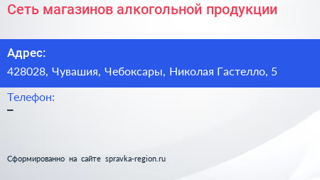 Сеть магазинов алкогольной продукции по адресу 428028, Чувашия, Чебоксары, Николая Гастелло, 5 в дальнейшем Организация, размещена в следующих категориях: