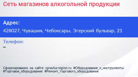 Сеть магазинов алкогольной продукции по адресу 428027, Чувашия, Чебоксары, Эгерский бульвар, 21 в дальнейшем Организация, размещена в следующих категориях: