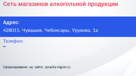 Сеть магазинов алкогольной продукции по адресу 428015, Чувашия, Чебоксары, Урукова, 1а в дальнейшем Организация, размещена в следующих категориях: