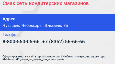 Смак, сеть кондитерских магазинов по адресу Чувашия, Чебоксары, Эльменя, 36 в дальнейшем Организация, размещена в следующих категориях:
