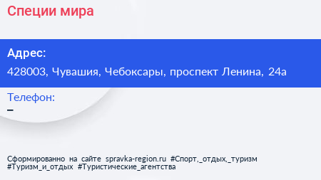 Специи мира по адресу 428003, Чувашия, Чебоксары, проспект Ленина, 24а в дальнейшем Организация, размещена в следующих категориях: