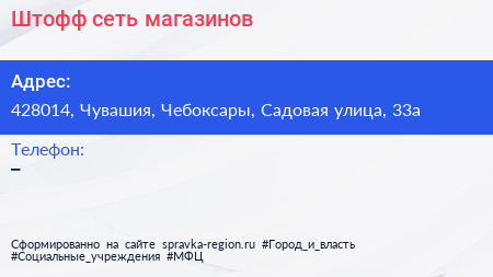 Штофф, сеть магазинов по адресу 428014, Чувашия, Чебоксары, Садовая улица, 33а в дальнейшем Организация, размещена в следующих категориях: