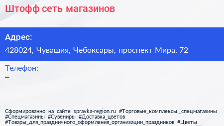 Штофф, сеть магазинов по адресу 428024, Чувашия, Чебоксары, проспект Мира, 72 в дальнейшем Организация, размещена в следующих категориях: