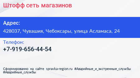 Штофф, сеть магазинов по адресу 428037, Чувашия, Чебоксары, улица Асламаса, 24 в дальнейшем Организация, размещена в следующих категориях: