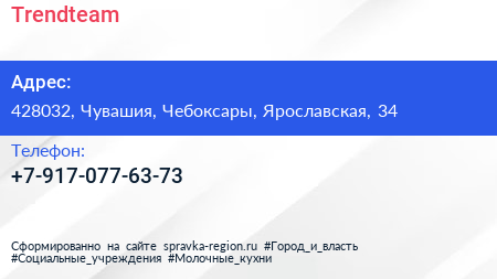 Trendteam по адресу 428032, Чувашия, Чебоксары, Ярославская, 34 в дальнейшем Организация, размещена в следующих категориях: