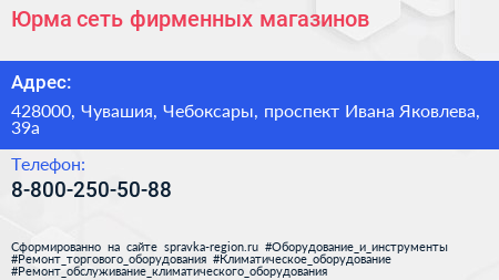 Юрма, сеть фирменных магазинов по адресу 428000, Чувашия, Чебоксары, проспект Ивана Яковлева, 39а в дальнейшем Организация, размещена в следующих категориях: