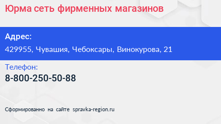 Юрма, сеть фирменных магазинов по адресу 429955, Чувашия, Чебоксары, Винокурова, 21 в дальнейшем Организация, размещена в следующих категориях: