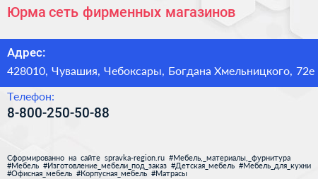 Юрма, сеть фирменных магазинов по адресу 428010, Чувашия, Чебоксары, Богдана Хмельницкого, 72е в дальнейшем Организация, размещена в следующих категориях: