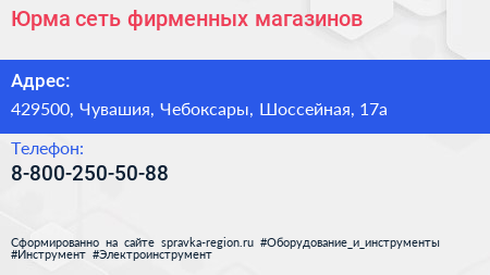 Юрма, сеть фирменных магазинов по адресу 429500, Чувашия, Чебоксары, Шоссейная, 17а в дальнейшем Организация, размещена в следующих категориях: