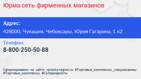 Юрма, сеть фирменных магазинов по адресу 428000, Чувашия, Чебоксары, Юрия Гагарина, 1 к2 в дальнейшем Организация, размещена в следующих категориях:
