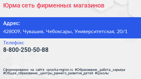 Юрма, сеть фирменных магазинов по адресу 428009, Чувашия, Чебоксары, Университетская, 20/1 в дальнейшем Организация, размещена в следующих категориях: