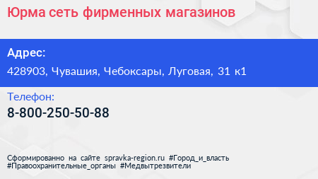 Юрма, сеть фирменных магазинов по адресу 428903, Чувашия, Чебоксары, Луговая, 31 к1 в дальнейшем Организация, размещена в следующих категориях: