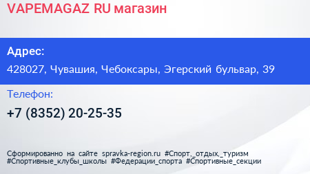 VAPEMAGAZ.RU, магазин по адресу 428027, Чувашия, Чебоксары, Эгерский бульвар, 39 в дальнейшем Организация, размещена в следующих категориях: