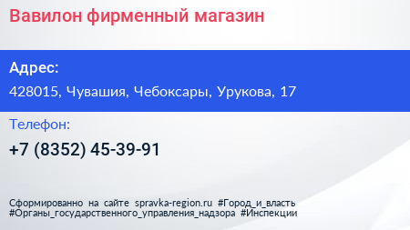 Вавилон, фирменный магазин по адресу 428015, Чувашия, Чебоксары, Урукова, 17 в дальнейшем Организация, размещена в следующих категориях: