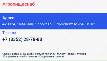 Агропищеснаб по адресу 428024, Чувашия, Чебоксары, проспект Мира, 3е к2 в дальнейшем Организация, размещена в следующих категориях: