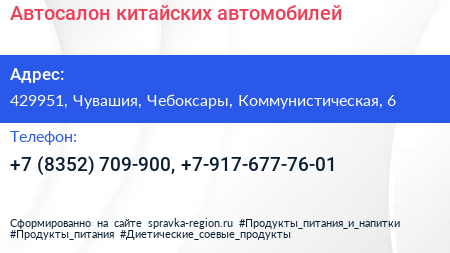 Автосалон китайских автомобилей по адресу 429951, Чувашия, Чебоксары, Коммунистическая, 6 в дальнейшем Организация, размещена в следующих категориях: