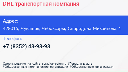 DHL, транспортная компания по адресу 428015, Чувашия, Чебоксары, Спиридона Михайлова, 1 в дальнейшем Организация, размещена в следующих категориях: