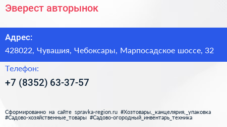Эверест, авторынок по адресу 428022, Чувашия, Чебоксары, Марпосадское шоссе, 32 в дальнейшем Организация, размещена в следующих категориях: