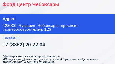 Форд центр Чебоксары по адресу 428000, Чувашия, Чебоксары, проспект Тракторостроителей, 123 в дальнейшем Организация, размещена в следующих категориях: