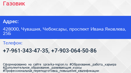 Газовик по адресу 428000, Чувашия, Чебоксары, проспект Ивана Яковлева, 25Б в дальнейшем Организация, размещена в следующих категориях: