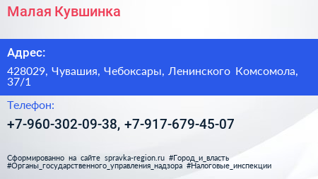 Малая Кувшинка по адресу 428029, Чувашия, Чебоксары, Ленинского Комсомола, 37/1 в дальнейшем Организация, размещена в следующих категориях: