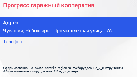 Прогресс, гаражный кооператив по адресу Чувашия, Чебоксары, Промышленная улица, 76 в дальнейшем Организация, размещена в следующих категориях: