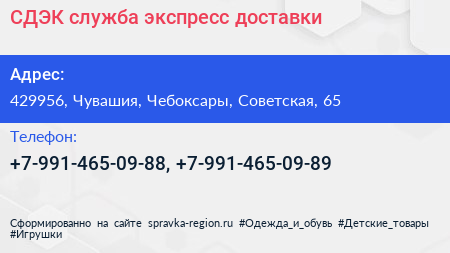 СДЭК, служба экспресс-доставки по адресу 429956, Чувашия, Чебоксары, Советская, 65 в дальнейшем Организация, размещена в следующих категориях: