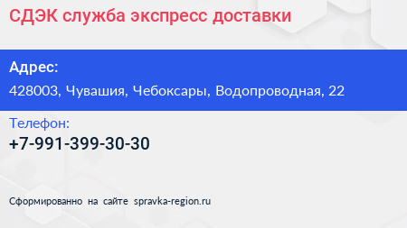СДЭК, служба экспресс-доставки по адресу 428003, Чувашия, Чебоксары, Водопроводная, 22 в дальнейшем Организация, размещена в следующих категориях: