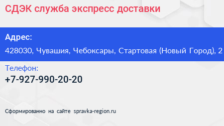 СДЭК, служба экспресс-доставки по адресу 428030, Чувашия, Чебоксары, Стартовая (Новый Город), 2 в дальнейшем Организация, размещена в следующих категориях: