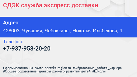 СДЭК, служба экспресс-доставки по адресу 428003, Чувашия, Чебоксары, Николая Ильбекова, 4 в дальнейшем Организация, размещена в следующих категориях:
