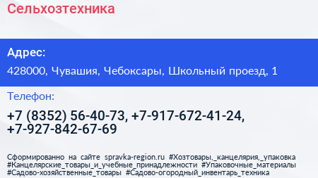 Сельхозтехника по адресу 428000, Чувашия, Чебоксары, Школьный проезд, 1 в дальнейшем Организация, размещена в следующих категориях: