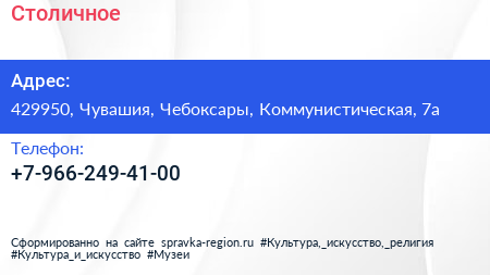 Столичное по адресу 429950, Чувашия, Чебоксары, Коммунистическая, 7а в дальнейшем Организация, размещена в следующих категориях: