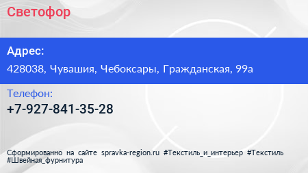 Светофор по адресу 428038, Чувашия, Чебоксары, Гражданская, 99а в дальнейшем Организация, размещена в следующих категориях: