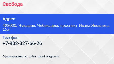 Свобода по адресу 428000, Чувашия, Чебоксары, проспект Ивана Яковлева, 15а в дальнейшем Организация, размещена в следующих категориях: