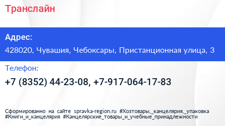 Транслайн по адресу 428020, Чувашия, Чебоксары, Пристанционная улица, 3 в дальнейшем Организация, размещена в следующих категориях: