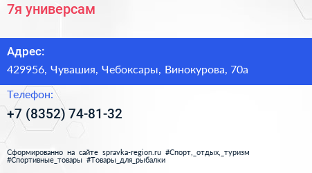 7я, универсам по адресу 429956, Чувашия, Чебоксары, Винокурова, 70а в дальнейшем Организация, размещена в следующих категориях: