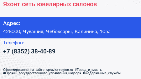 Яхонт, сеть ювелирных салонов по адресу 428000, Чувашия, Чебоксары, Калинина, 105а в дальнейшем Организация, размещена в следующих категориях: