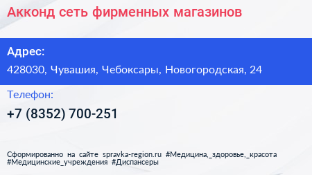Акконд, сеть фирменных магазинов по адресу 428030, Чувашия, Чебоксары, Новогородская, 24 в дальнейшем Организация, размещена в следующих категориях: