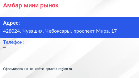 Амбар, мини-рынок по адресу 428024, Чувашия, Чебоксары, проспект Мира, 17 в дальнейшем Организация, размещена в следующих категориях:
