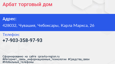 Арбат, торговый дом по адресу 428032, Чувашия, Чебоксары, Карла Маркса, 26 в дальнейшем Организация, размещена в следующих категориях:
