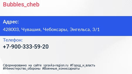 Bubbles_cheb по адресу 428003, Чувашия, Чебоксары, Энгельса, 3/1 в дальнейшем Организация, размещена в следующих категориях: