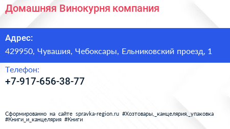 Домашняя Винокурня, компания по адресу 429950, Чувашия, Чебоксары, Ельниковский проезд, 1 в дальнейшем Организация, размещена в следующих категориях: