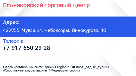 Ельниковский, торговый центр по адресу 429955, Чувашия, Чебоксары, Винокурова, 40 в дальнейшем Организация, размещена в следующих категориях: