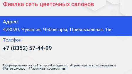Фиалка, сеть цветочных салонов по адресу 428020, Чувашия, Чебоксары, Привокзальная, 1ж в дальнейшем Организация, размещена в следующих категориях: