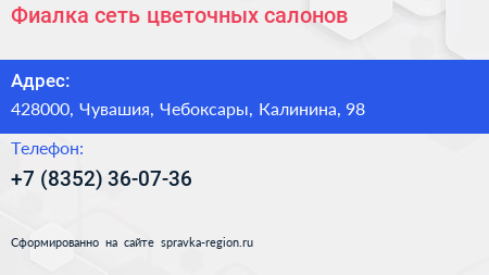 Фиалка, сеть цветочных салонов по адресу 428000, Чувашия, Чебоксары, Калинина, 98 в дальнейшем Организация, размещена в следующих категориях: