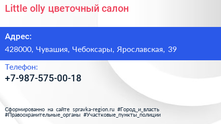 Little olly, цветочный салон по адресу 428000, Чувашия, Чебоксары, Ярославская, 39 в дальнейшем Организация, размещена в следующих категориях: