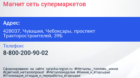 Магнит, сеть супермаркетов по адресу 428037, Чувашия, Чебоксары, проспект Тракторостроителей, 39Б в дальнейшем Организация, размещена в следующих категориях: