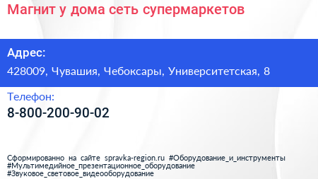 Магнит у дома, сеть супермаркетов по адресу 428009, Чувашия, Чебоксары, Университетская, 8 в дальнейшем Организация, размещена в следующих категориях: