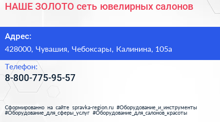 НАШЕ ЗОЛОТО, сеть ювелирных салонов по адресу 428000, Чувашия, Чебоксары, Калинина, 105а в дальнейшем Организация, размещена в следующих категориях: