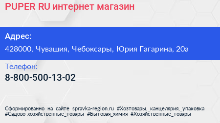PUPER.RU, интернет-магазин по адресу 428000, Чувашия, Чебоксары, Юрия Гагарина, 20а в дальнейшем Организация, размещена в следующих категориях:
